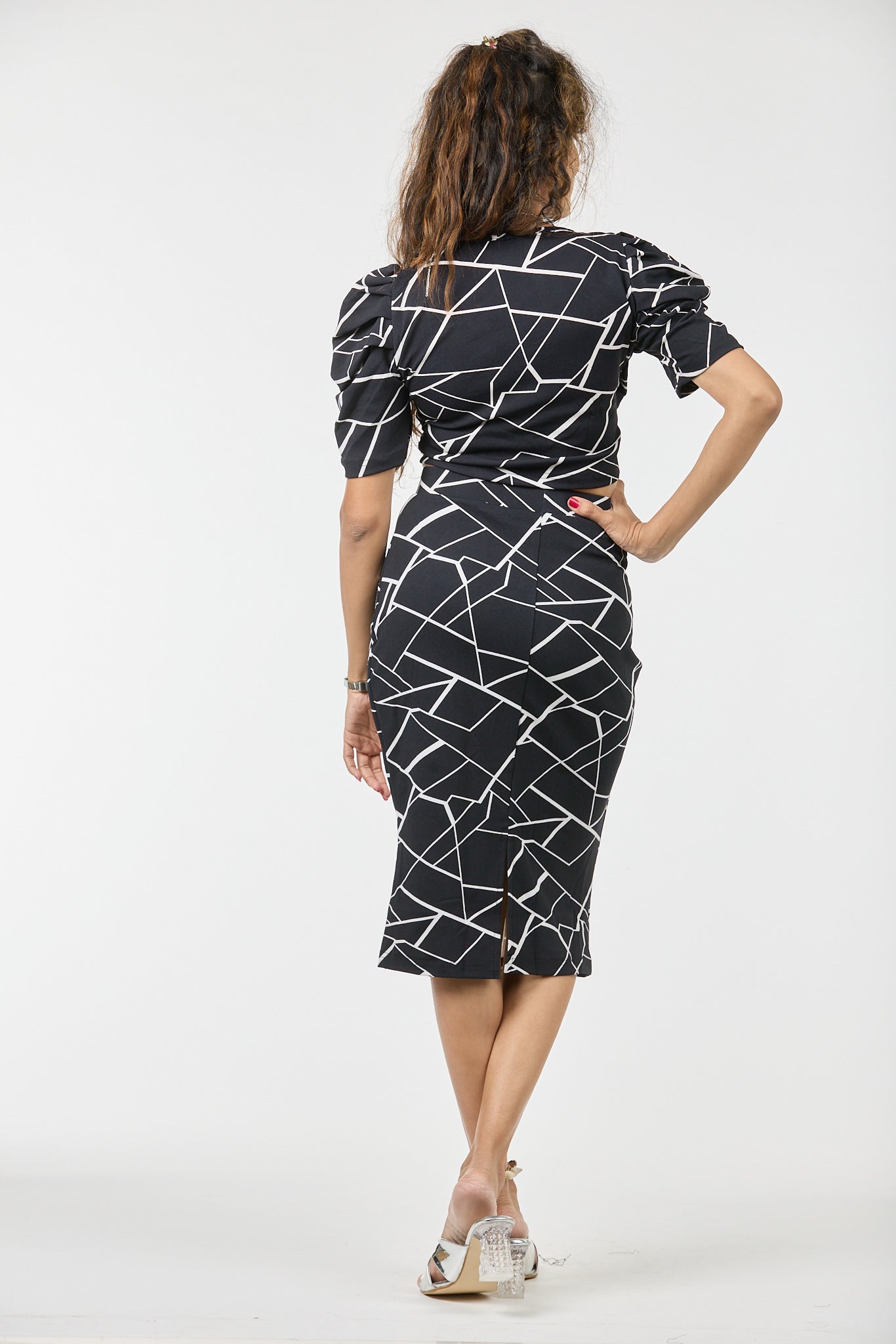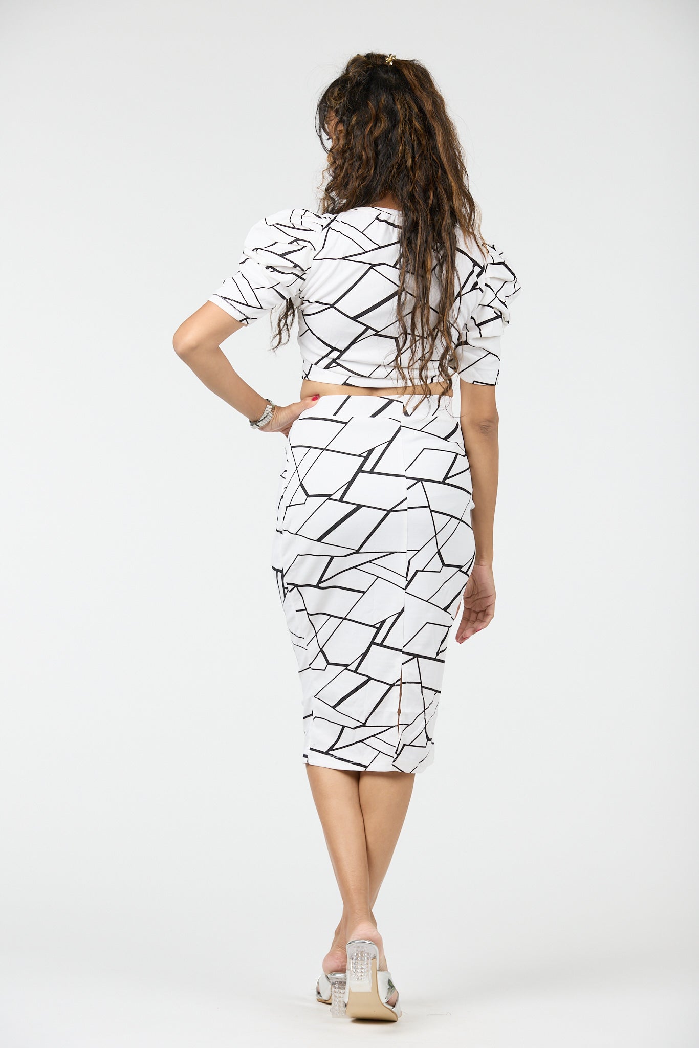 Go for a sleek low bun, neutral heels, and a bold lip — let the structured elegance of this set speak for itself.