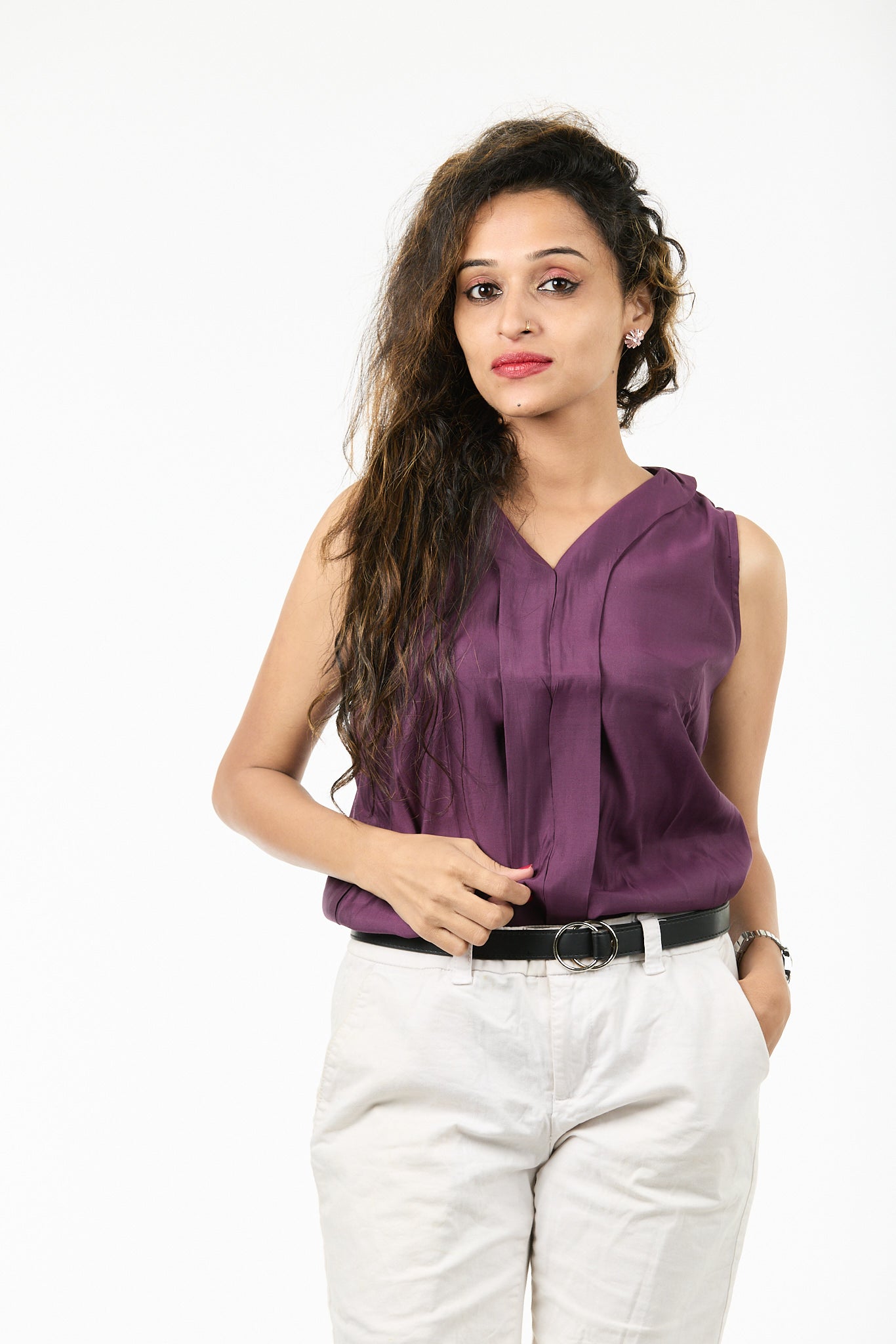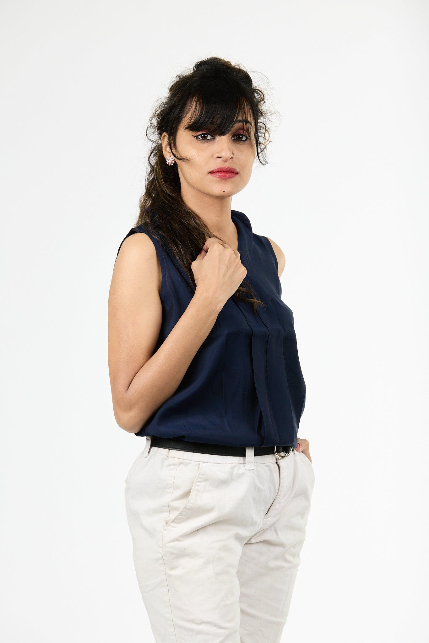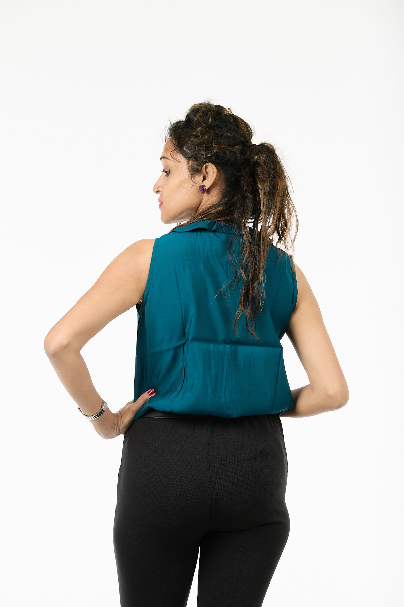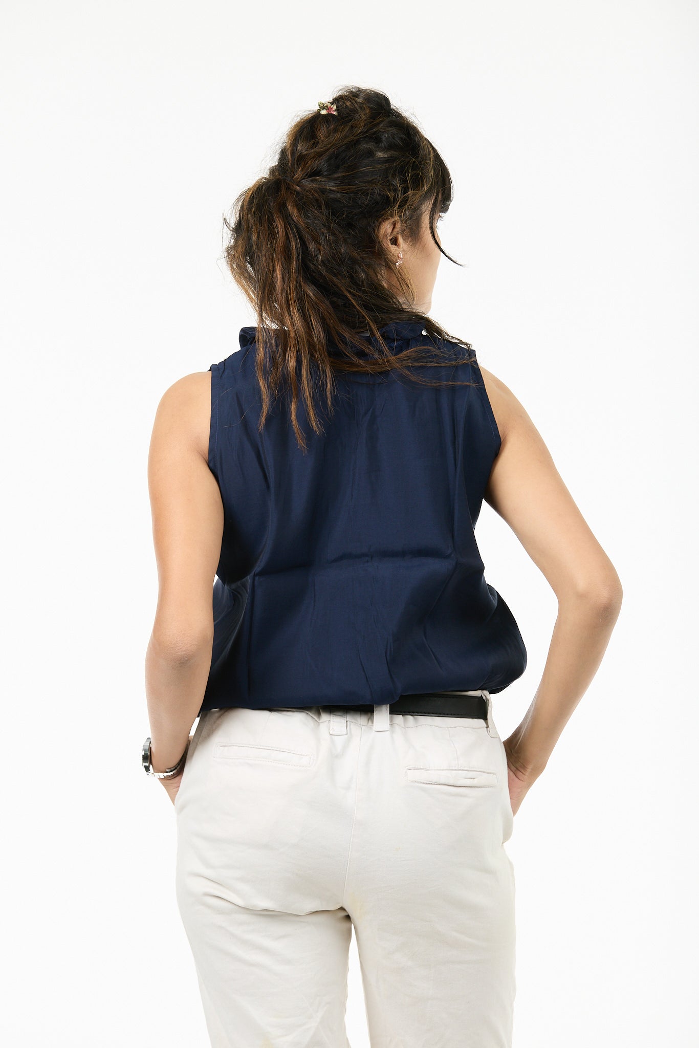 Tuck it into high-waisted trousers and layer with a blazer — perfect for boardroom meetings or after-hours sophistication.