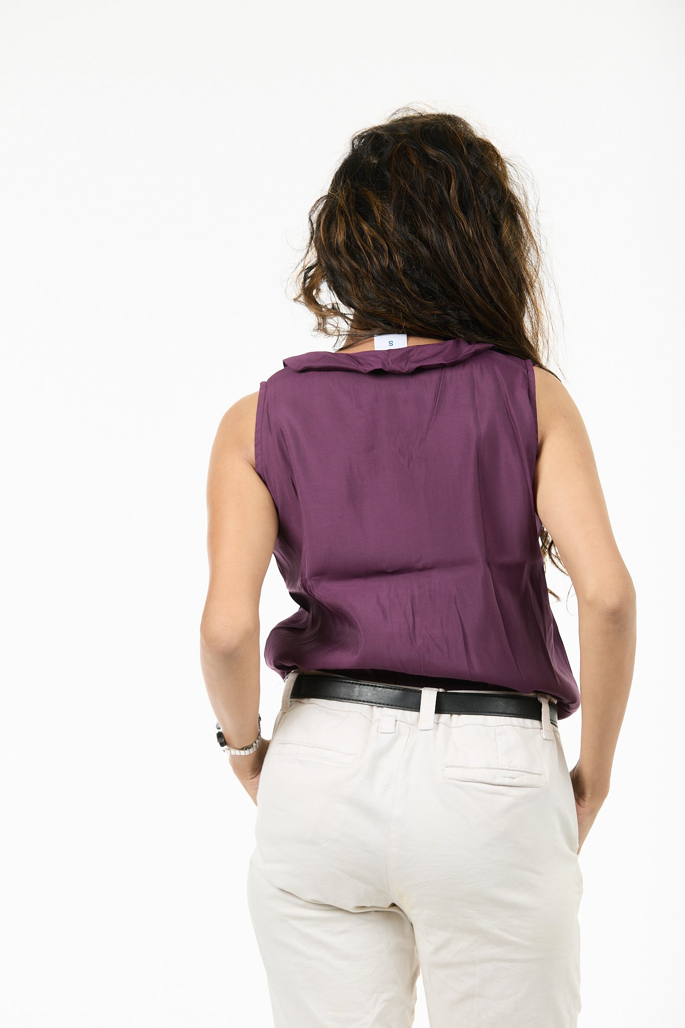 Each hue complements the design’s fluid structure, allowing easy coordination with a variety of bottoms and accessories.